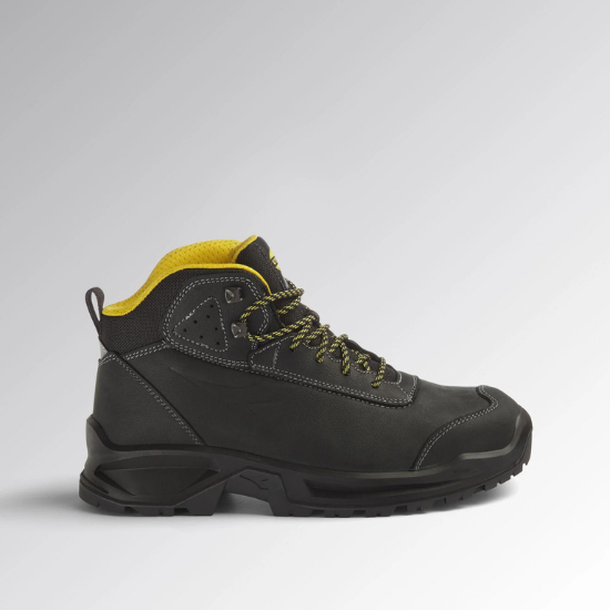 Calzatura di sicurezza mid-cut S3 in pelle italiana pull-up nubuck idrorepellente.